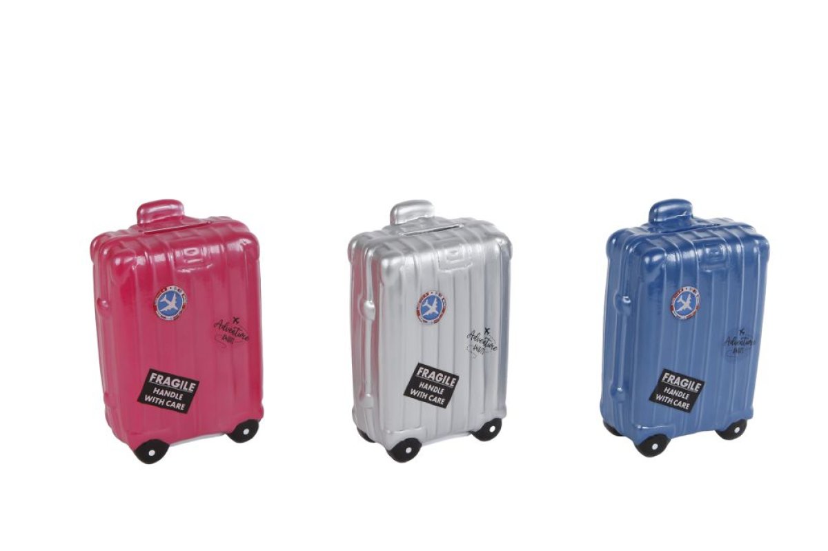 Spaarpot Koffer aardewerk 13,5x9x5cm assorti
