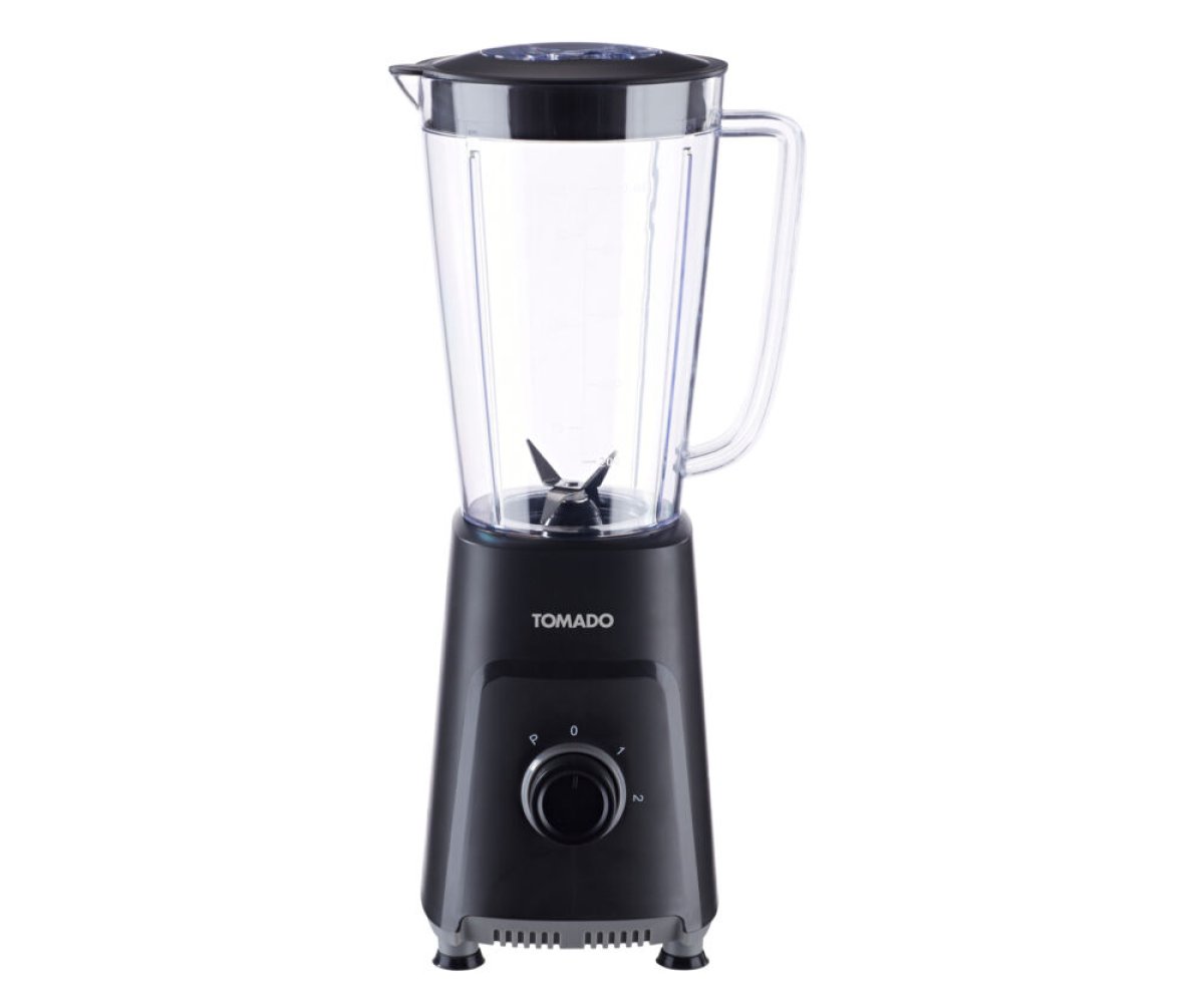 Met de Tomado TTB1001B blender maak je binnen een mum van tijd een heerlijke smoothie. De blender heeft een totale inhoud van 1 liter. Met de maataanduiding aan de zijkant van de kan, zie je hoeveel er daadwerkelijk in zit. Je kunt de blender gemakkelijk bedienen met de draaiknop aan de voorkant. Hij is voorzien van 2 snelheden en een handige pulsestand. In de deksel zit een vuldop, waardoor je tussentijds ingrediënten kan toevoegen. Met het roestvrijstalen mes kan je gemakkelijk hakken, snijden, mixen en pureren. Het roestvrijstalen mes is uitneembaar, zodat je hem gemakkelijk schoon kunt maken na gebruik. Om ervoor te zorgen dat de blender tijdens het blenden stevig blijft staan, is deze blender voorzien van anti-slipvoetjes aan de onderkant.