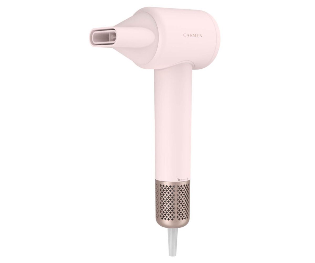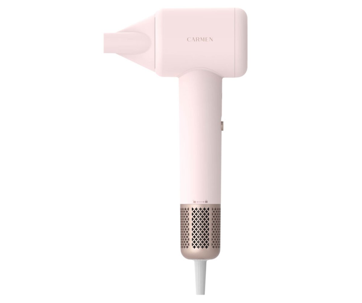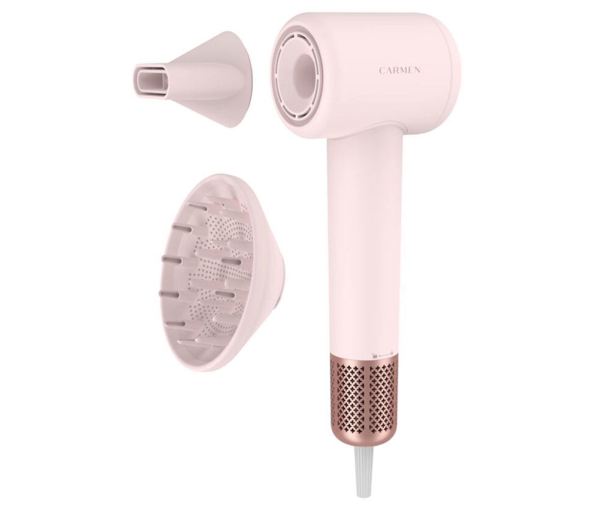 Maak kennis met de Carmen CHD1630P föhn: een krachtige haardroger die prestaties en stijl perfect combineert. Deze unieke roze föhn is een echte eyecatcher in je badkamer en dankzij de indrukwekkende 110.000 rpm motor droogt je haar tot wel 5x sneller. Met 3 warmtestanden, een slimme warm-koud functie voor stralend en gezond haar én een krachtige ION technologie wordt pluis verminderd en krijgt je haar een prachtige glans. Gebruik de coolshot functie om je look langdurig te fixeren. Deze complete föhn met diffuser wordt geleverd met zowel een diffuser als blaasmond, ideaal voor extra volume of perfect gedefinieerde krullen. De perfecte diffuser föhn voor iedere haarstijl. Dankzij het afneembare rooster is de föhn eenvoudig schoon te maken en met de 2 Carmen clips en luxe velvet bewaaretui neem je jouw haardroger gemakkelijk overal mee naartoe.