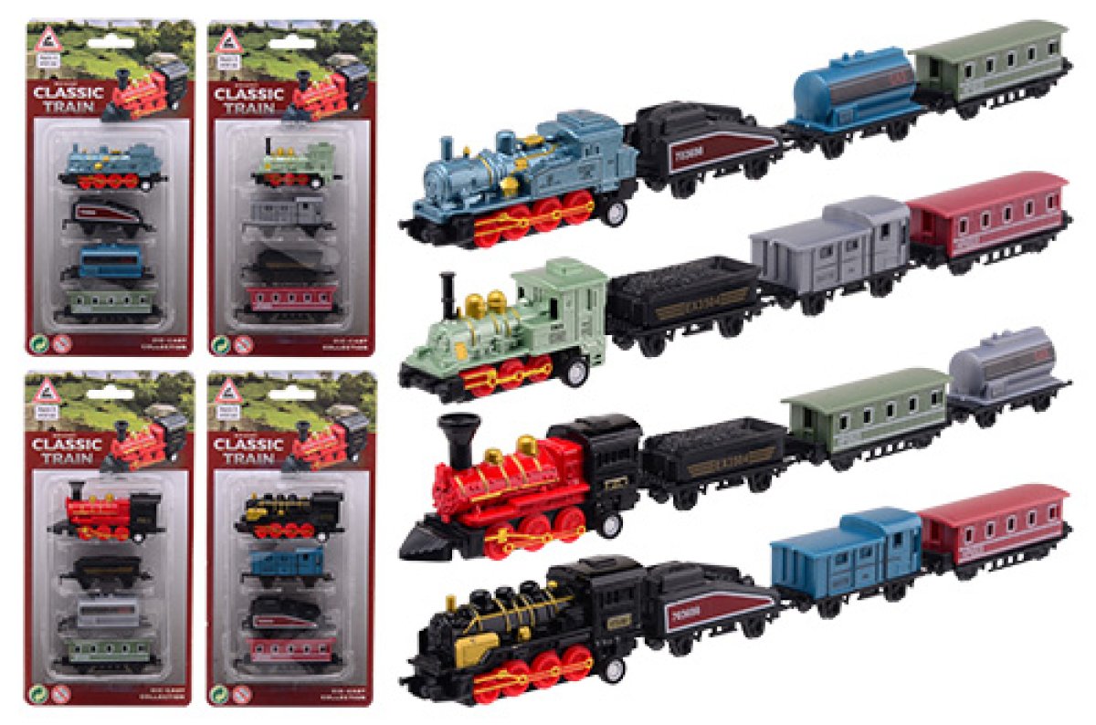 Locomotief speelset 4-delig op kaart die-cast 4 assorti